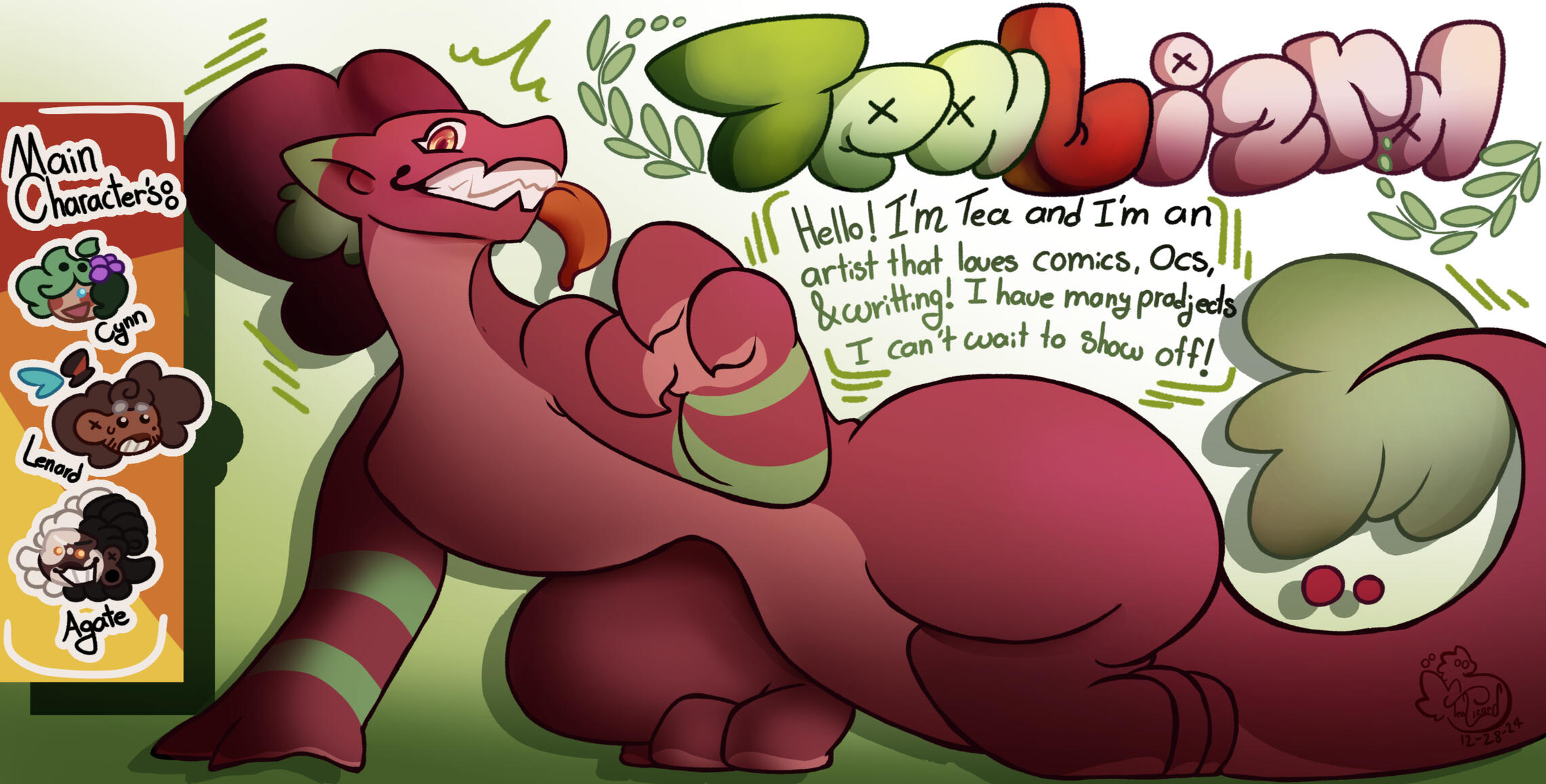 Hello! I am TeaLizard, an independent artist who does everything from comic creation to writing.I have many fun projects that I can't wait to show to those that are interested.